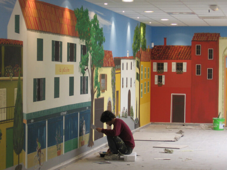 Si vous désirez personnaliser votre lieu de vie ou de travail, rendre une façade plus vivante, égayer un mur aveugle, je réalise vos projets de décors muraux intérieurs ou extérieurs en m’adaptant à votre demande.